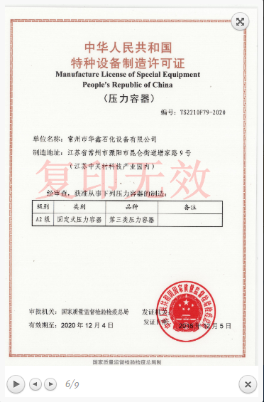 本公司于2005年创建,主要从事设计、制造、销售各类A2类不锈钢、钛、稀有金属、特材、各种复合材料的压力容器,包括各类塔设备、各类热交换器、各类反应容器、贮存容器以及非标设备等。本公司为国家级重点高新技术企业。公司占地面积5万平方米。建筑面积2.6万平方米,拥有专业的不锈钢、碳钢、特种材料和稀有金属制造车间。现有员工100余名,注册资本达5018万元。拥有总资产 1亿元。本公司于2008年取得了一类、二类、三类压力容器的制造许可证,通过了ISO9001质量管理体系认证,同时我公司拥有独立自主的进出口权利。