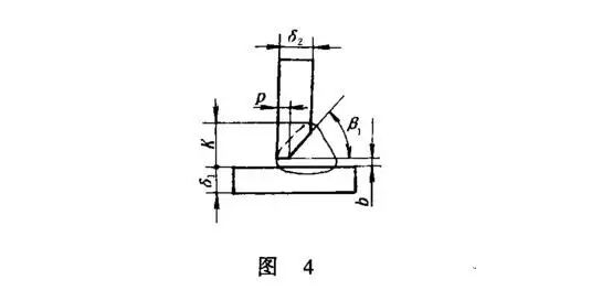 焊脚尺寸K=(δ2-P)tanβ1+b+e≈1.2δ2+1.5 (5)