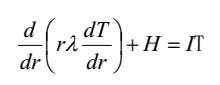 式中,r 为距等离子体中心的径向距离,λ 为热传导率,T 为温度,H 为热辐射功率密度,T 为等 离子体对入射激光的吸收率,I 为激光功率密度。以上所有参数在激光光斑半径 rF 范围内取平均值, 则方程式(1)可改写为