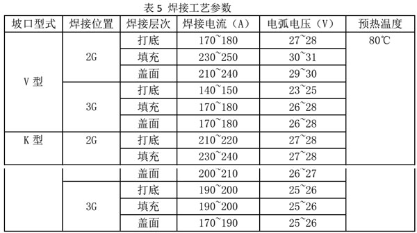 试验采用 30mmEQ51 钢板进行焊接试验,根据生产中接头型式的不同,试验坡口型式为 V 型和 K 型两种。考虑到不同线能量对焊接接头性能的影响,两种坡口型式的焊接都分别取横焊(2G)、立 焊(3G)两种焊接位置。