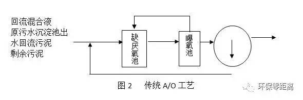 A/O脱氮除磷系统,即缺氧、好氧脱氮除磷系统。它是70年代主要由美国、南非等国开发的具有去除废水中氮污染物的工艺,同时对脱磷亦有一定的效果。其工艺流程是让废水依次经历缺氧、好氧两个阶段,故人们通称为缺氧、好氧脱氮除磷系统,简称A/O系统。A/O系统流程简单、运行管理方便,且很容易利用原厂改建,从而提高了出水水质。近年来已得到了越来越广泛的应用。A/O法工艺如图2所示。