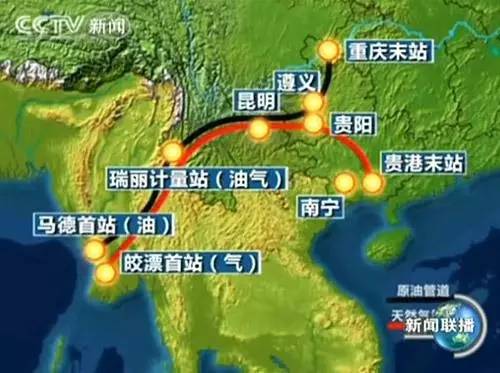 中缅原油管道由中国石油和缅甸油气公司合资建设,起点位于缅甸西海岸马德岛,全长771公里,设置站场5座,设计年输量2200万吨,并建设一座规模为30万吨级的原油码头。管道工程投运后,每年可为缅甸下载200万吨原油。中缅原油管道工程投运还将有力带动我国西南地区经济发展。目前,云南省正在依托中缅原油管道项目,积极布局、发展石化新兴产业,最大程度释放资源价值效应,建成产业链完备的新兴石油炼化基地。