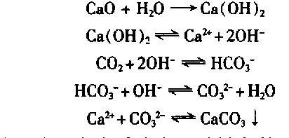 循环水系统中除要解决水质澄清外,最关键是去除污水中的Caz'和m广,保持水质稳定。转炉吹炼时加人的石灰尘粒随烟气气流带人湿法净化系统,石灰遇水变成 Ca(OH)2,烟气中存在的大量CO2溶于水中,可形成以下化学反应: